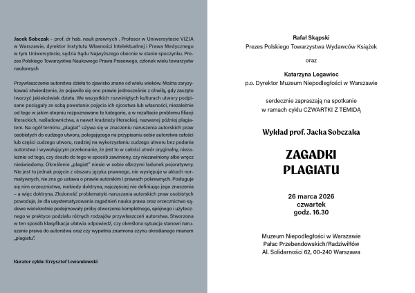 Temat prelekcji: „Zagadki plagiatu”.